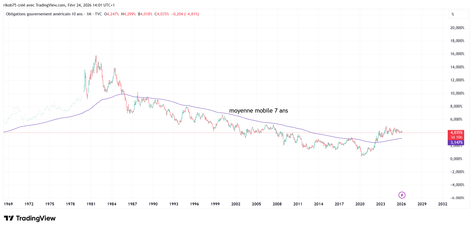Mais selon cette lecture, nous serions en train de basculer vers un autre monde : un monde où les taux longs entrent en tendance haussière structurelle, comme cela s’est produit par le passé sur des périodes longues (décennies), notamment lors de grandes reconfigurations historiques.