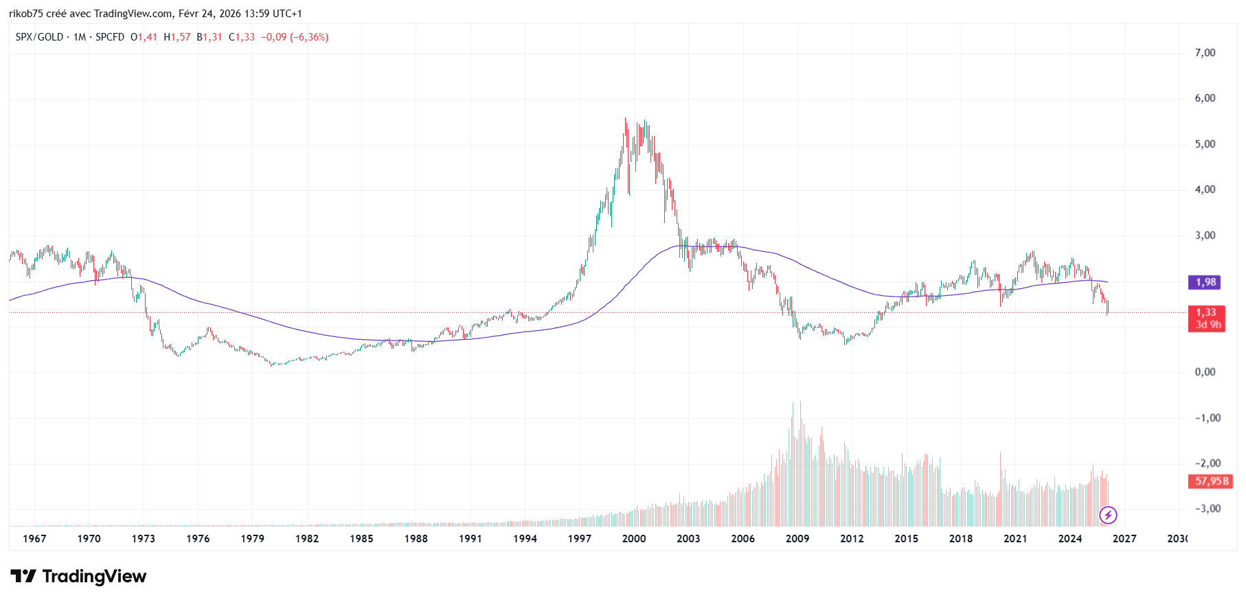 Donc, quand l’or surperforme durablement c’est un signal qui suggère que le marché te dit:
